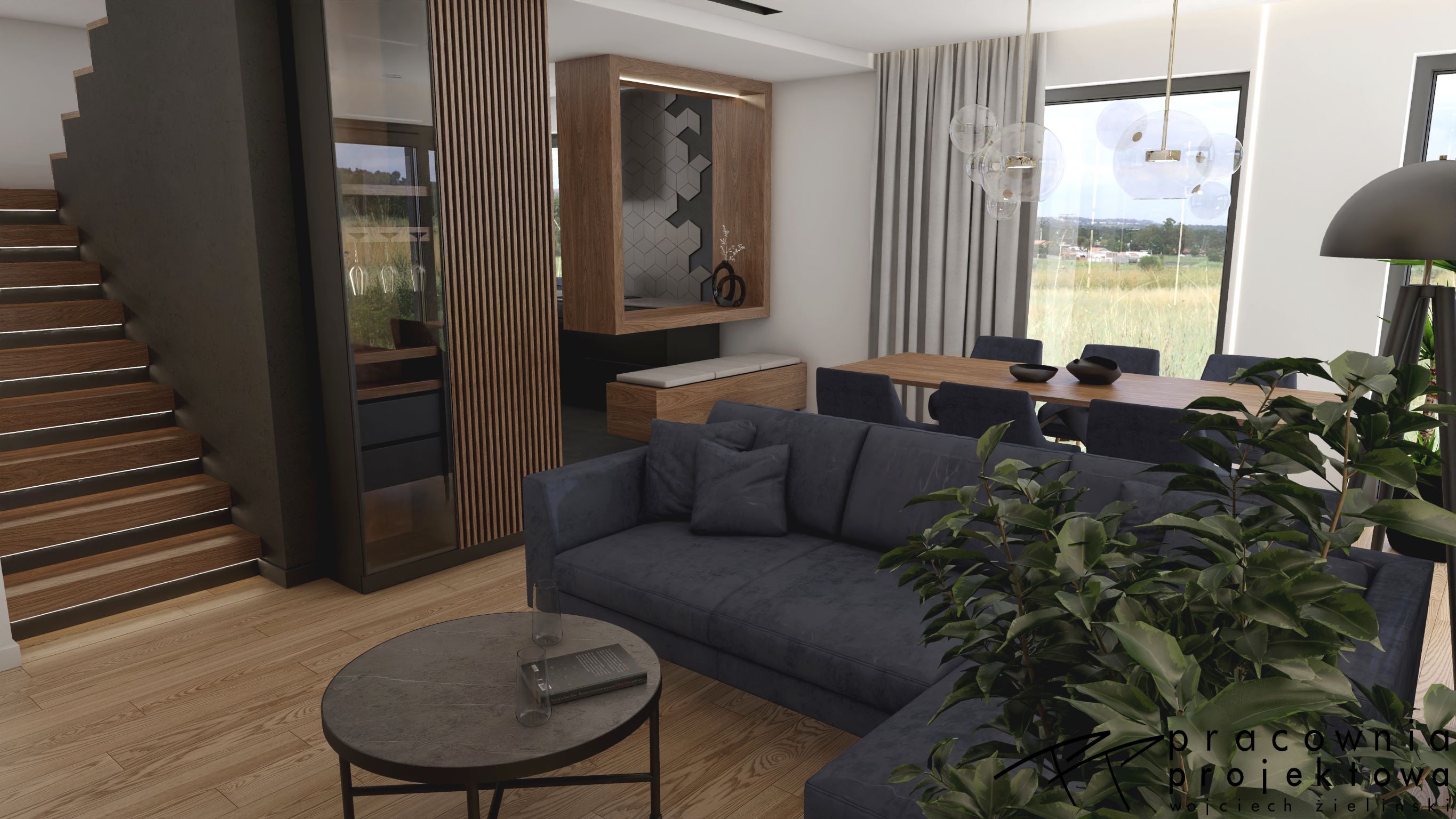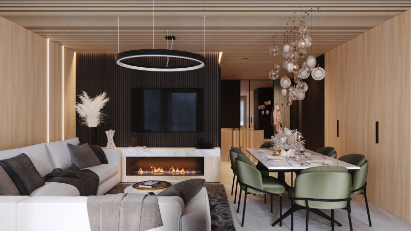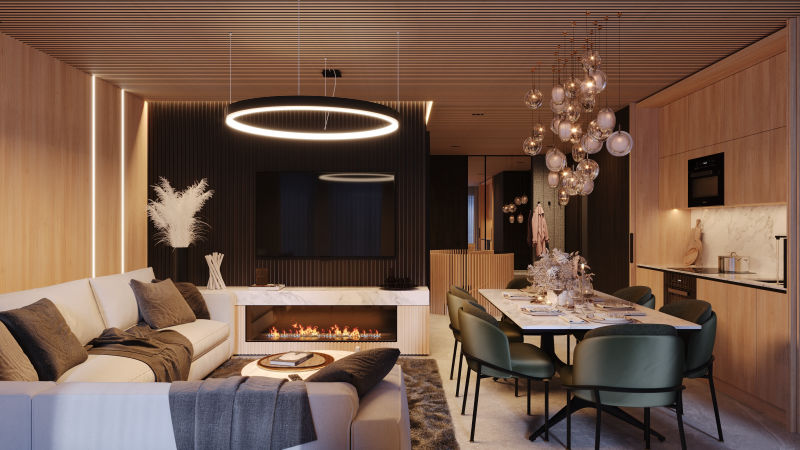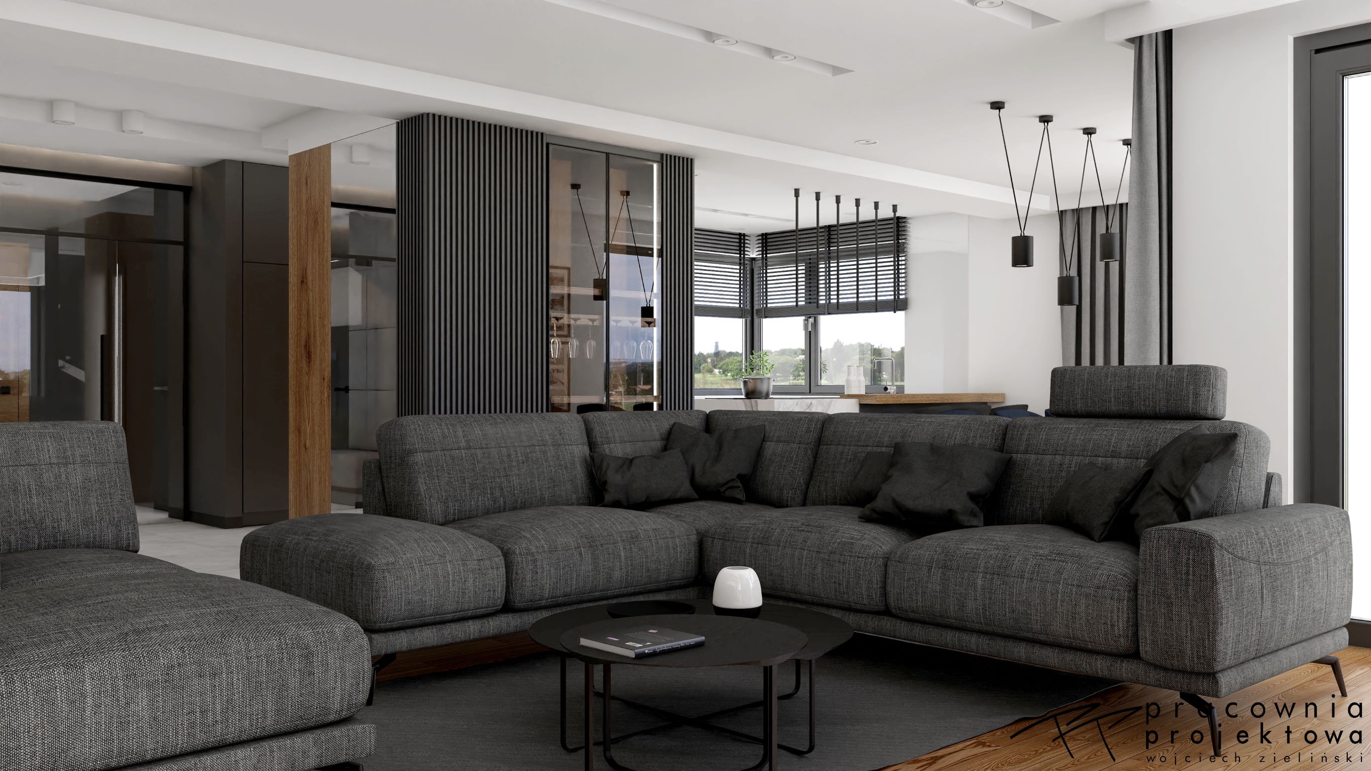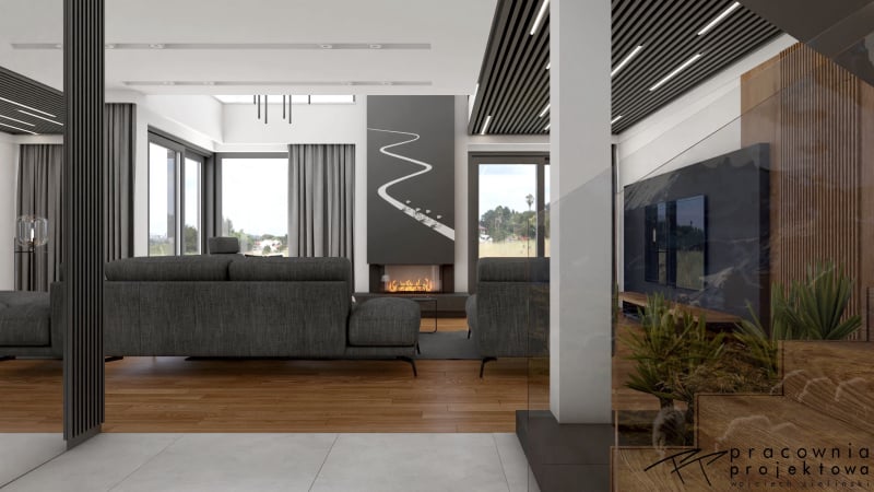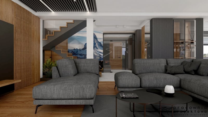3D візуалізація вітальні польського дизайнера Войцех Зілинський, який створював проєкти для відомої компанії Ecru S.C. - виробника популярної у меблевій галузі програми PRO100.