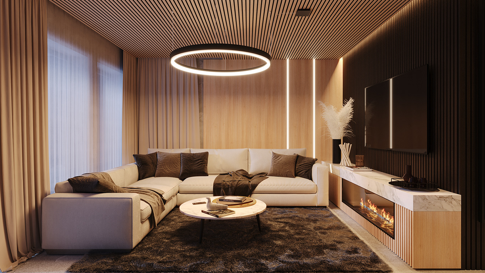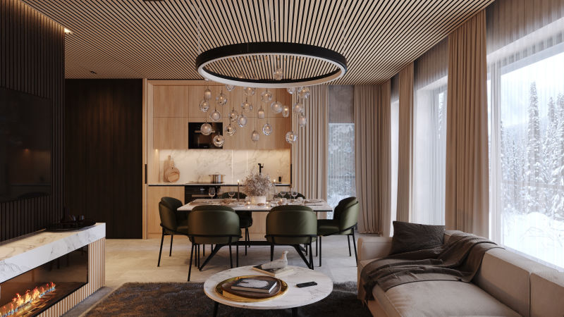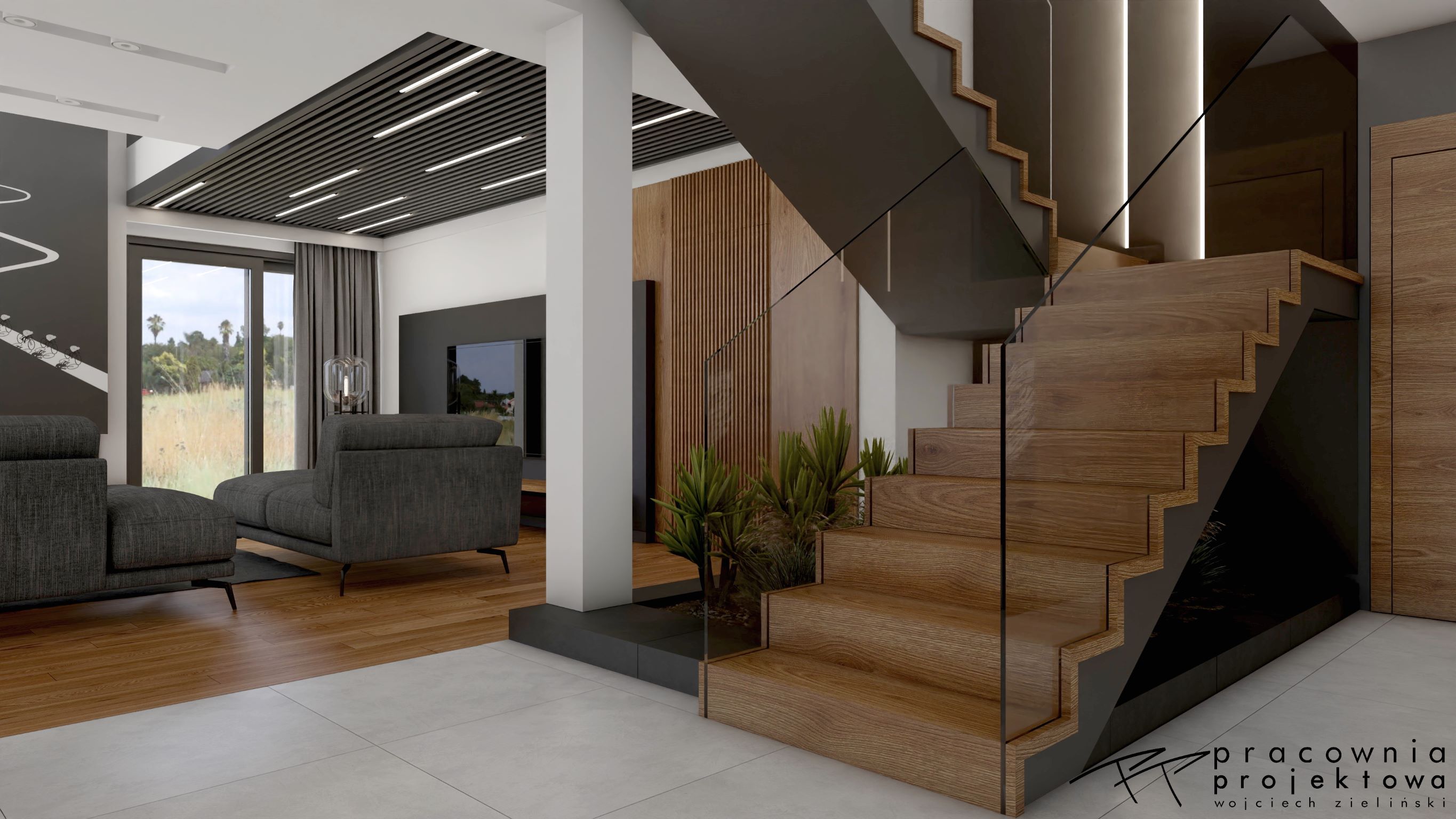 3D візуалізація вітальні польського дизайнера Войцех Зілинський, який створював проєкти для відомої компанії Ecru S.C. - виробника популярної у меблевій галузі програми PRO100.