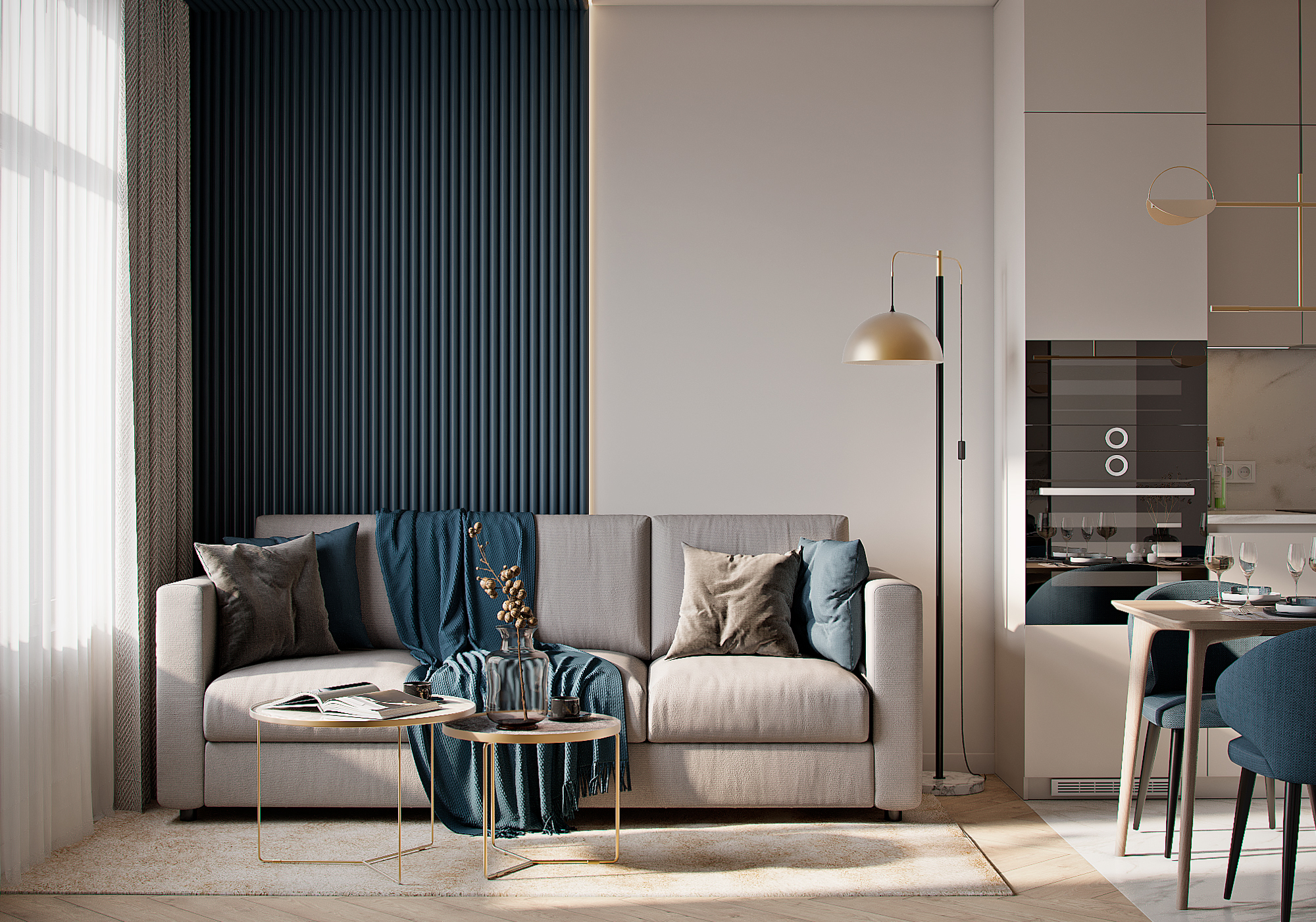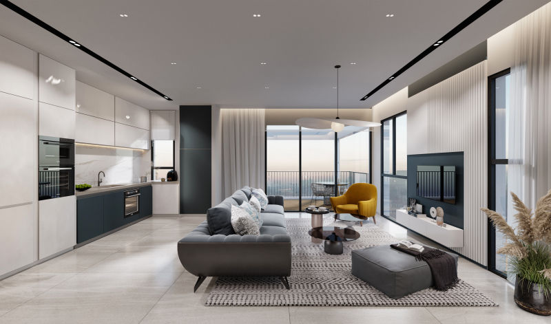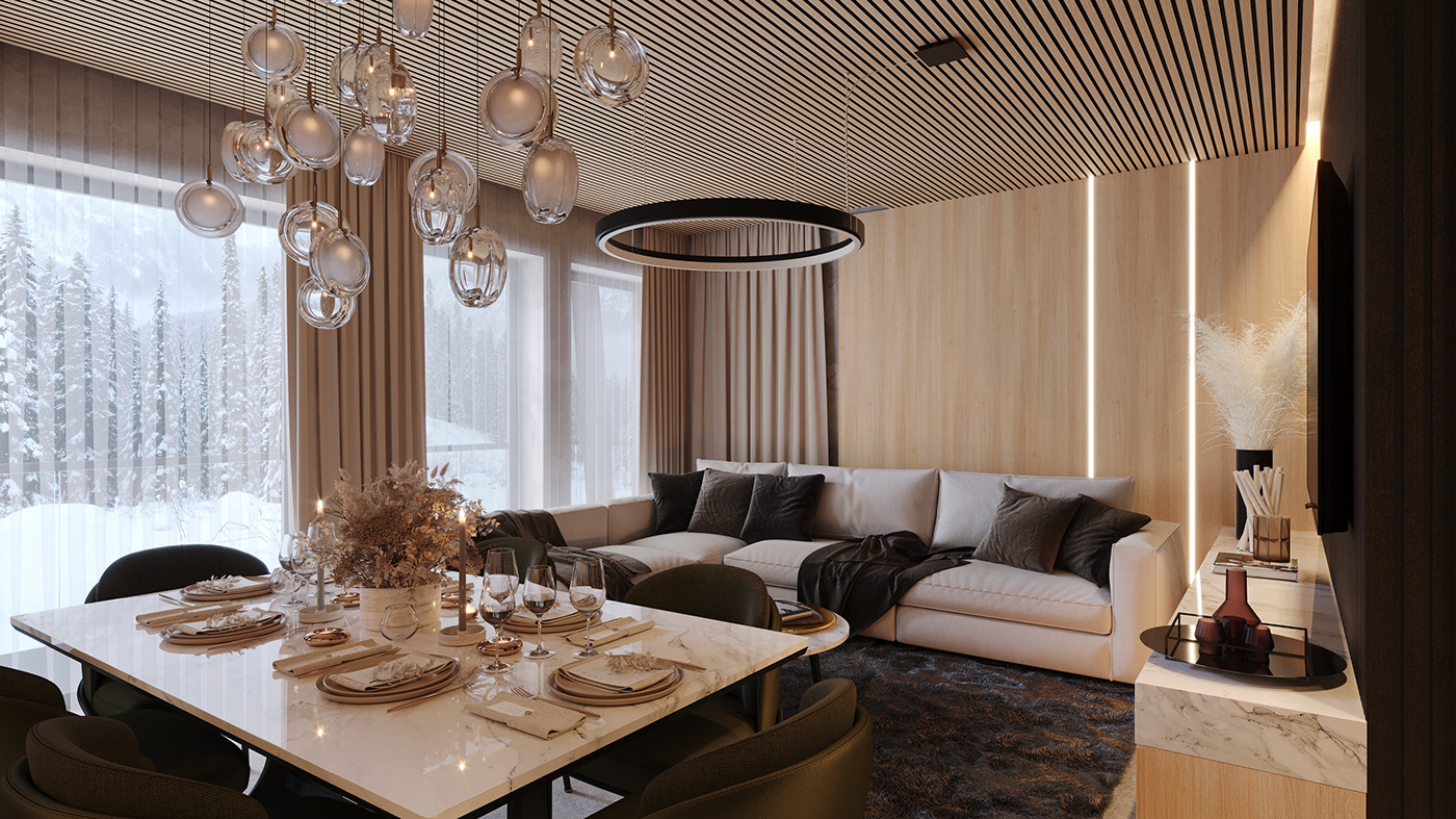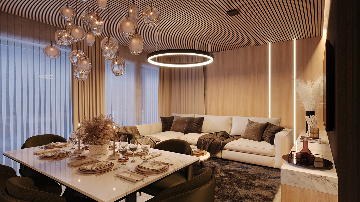 3D візуалізація вітальні турецького дизайнера Огуз Бедірхан Калдір. Більше його робіт на сторінці у Behance.