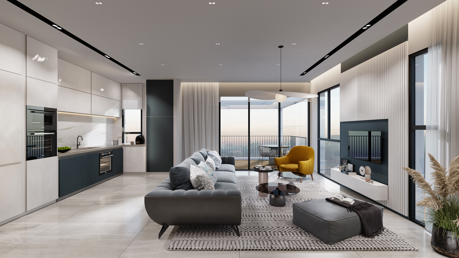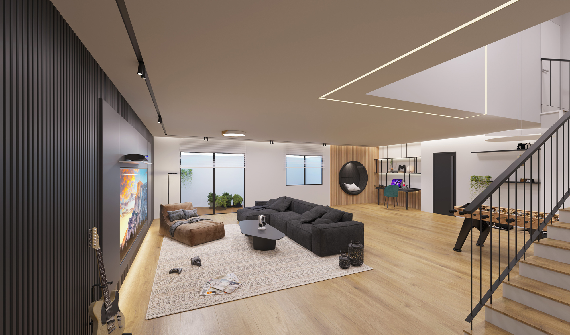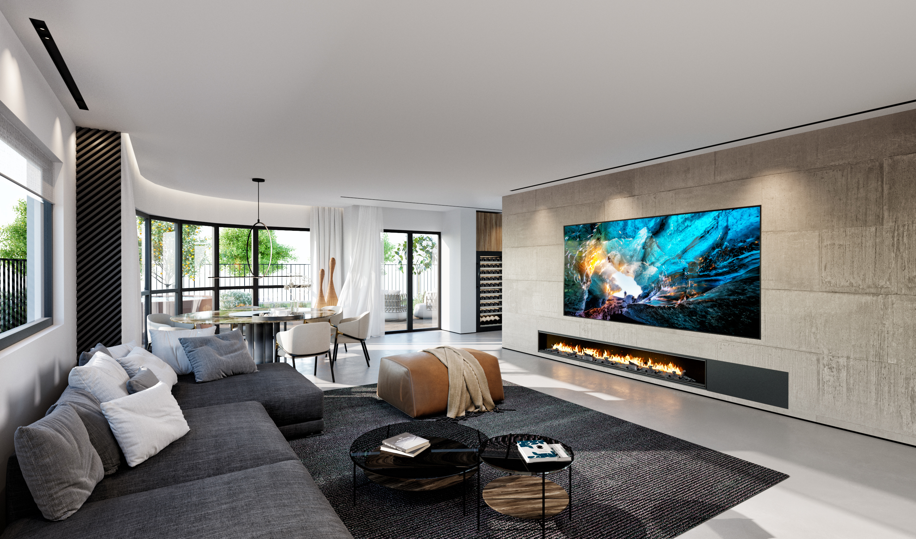 3D візуалізація вітальні турецького дизайнера Огуз Бедірхан Калдір. Більше його робіт на сторінці у Behance.