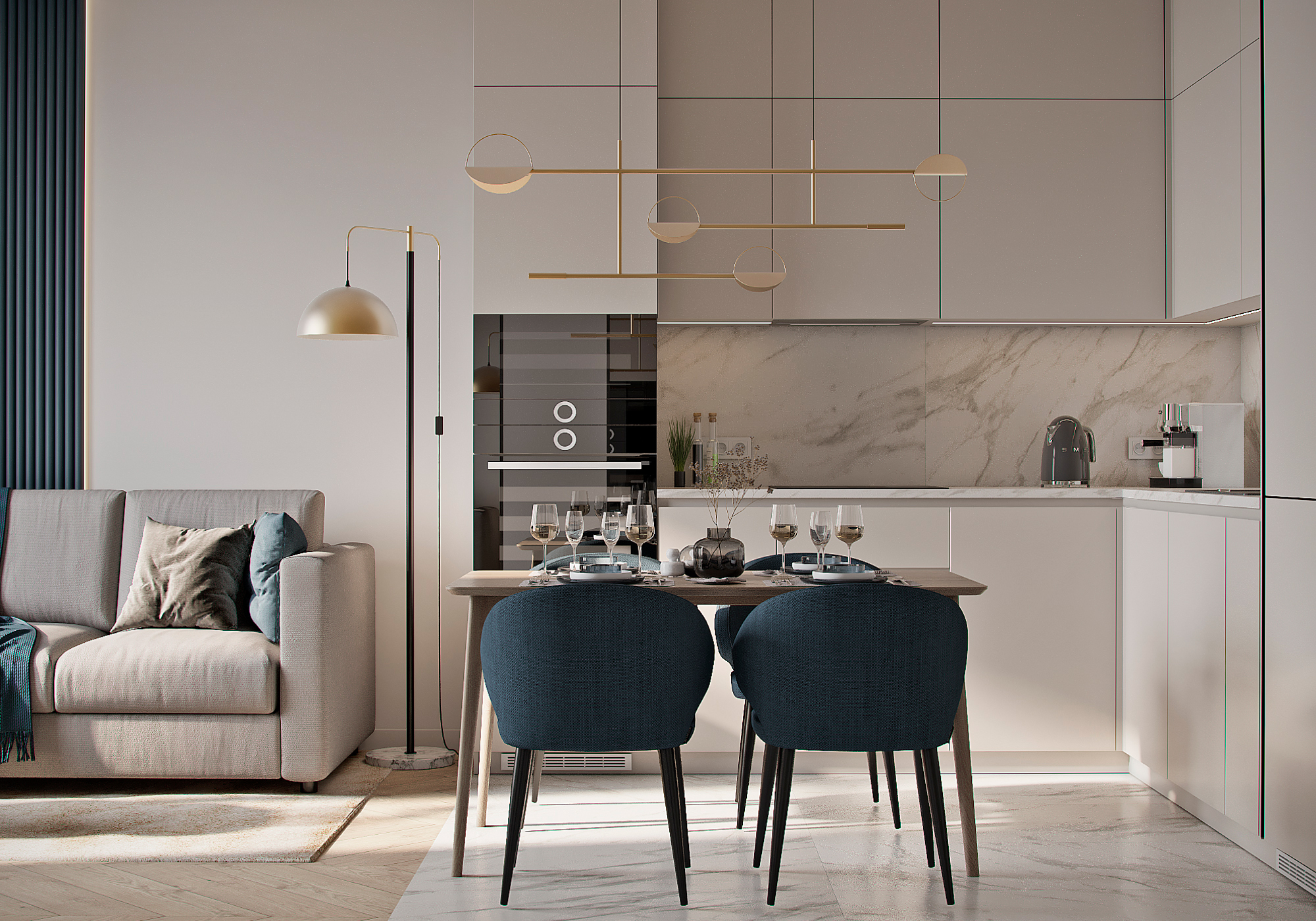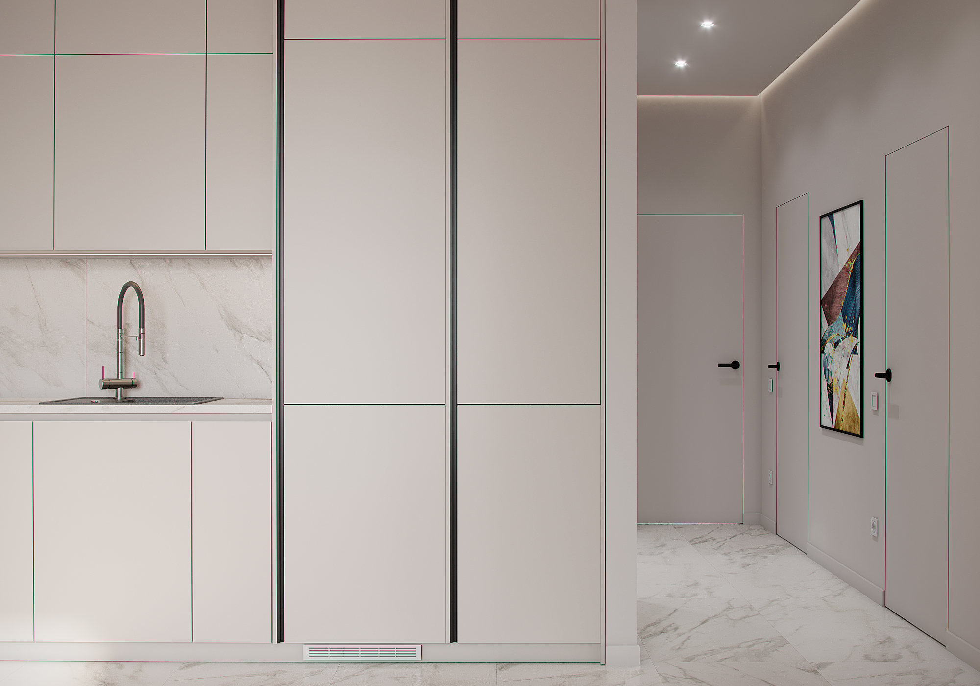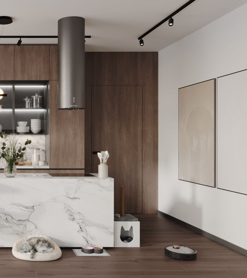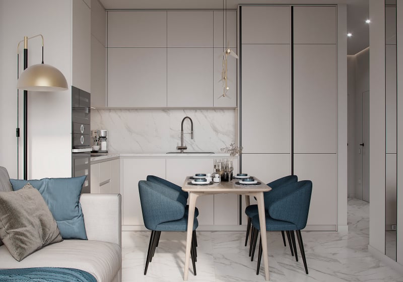 Сучасна кухня у мінімалістичному стилі з приємним поєднанням кольорів від студії з Нідерландів "moon 3dart".