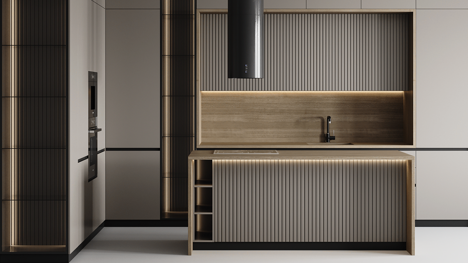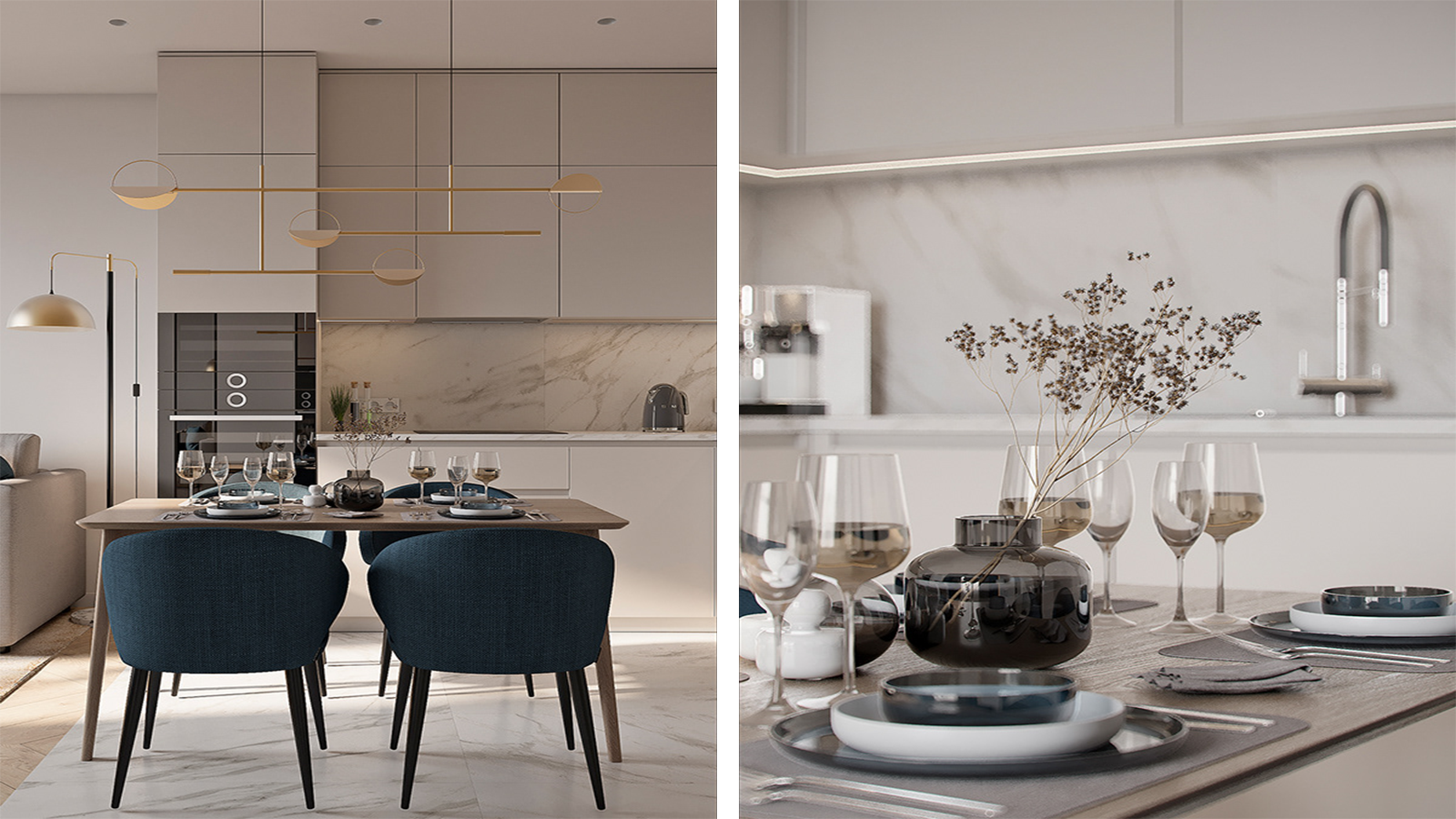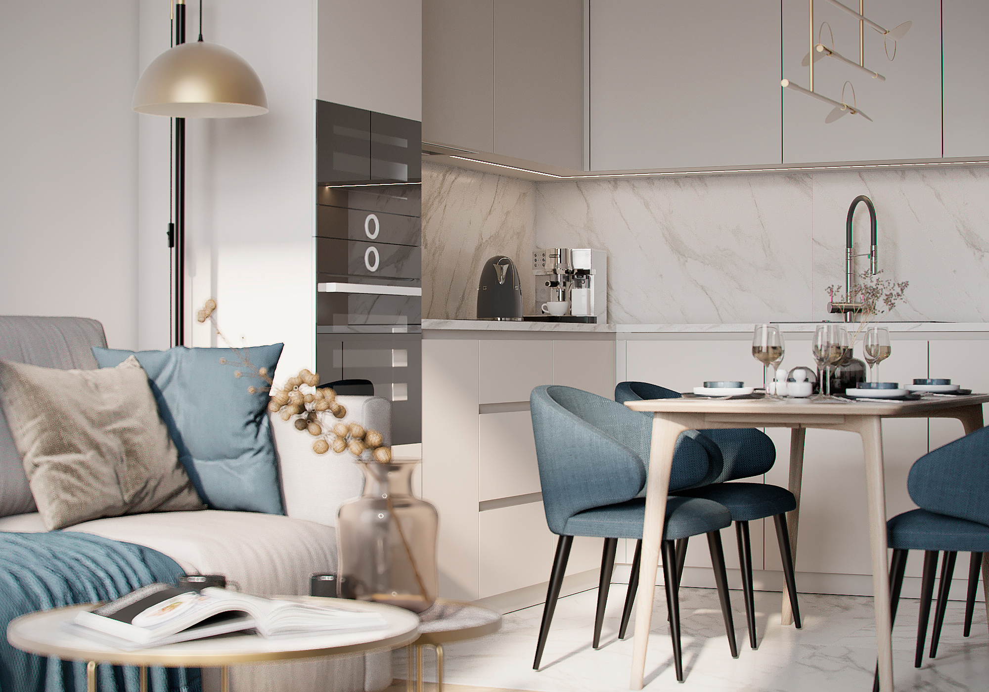 Сучасна кухня у мінімалістичному стилі з приємним поєднанням кольорів від студії з Нідерландів "moon 3dart".