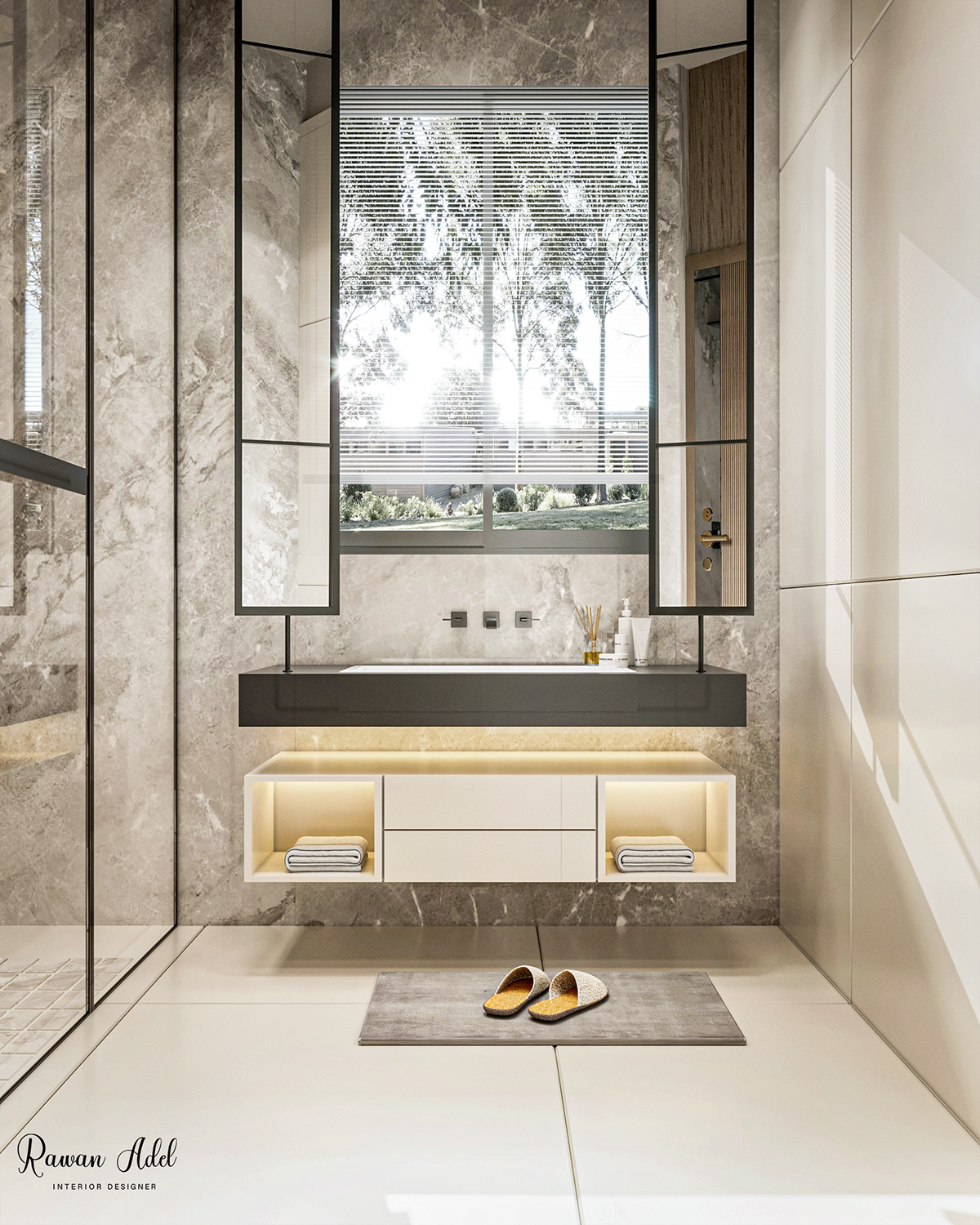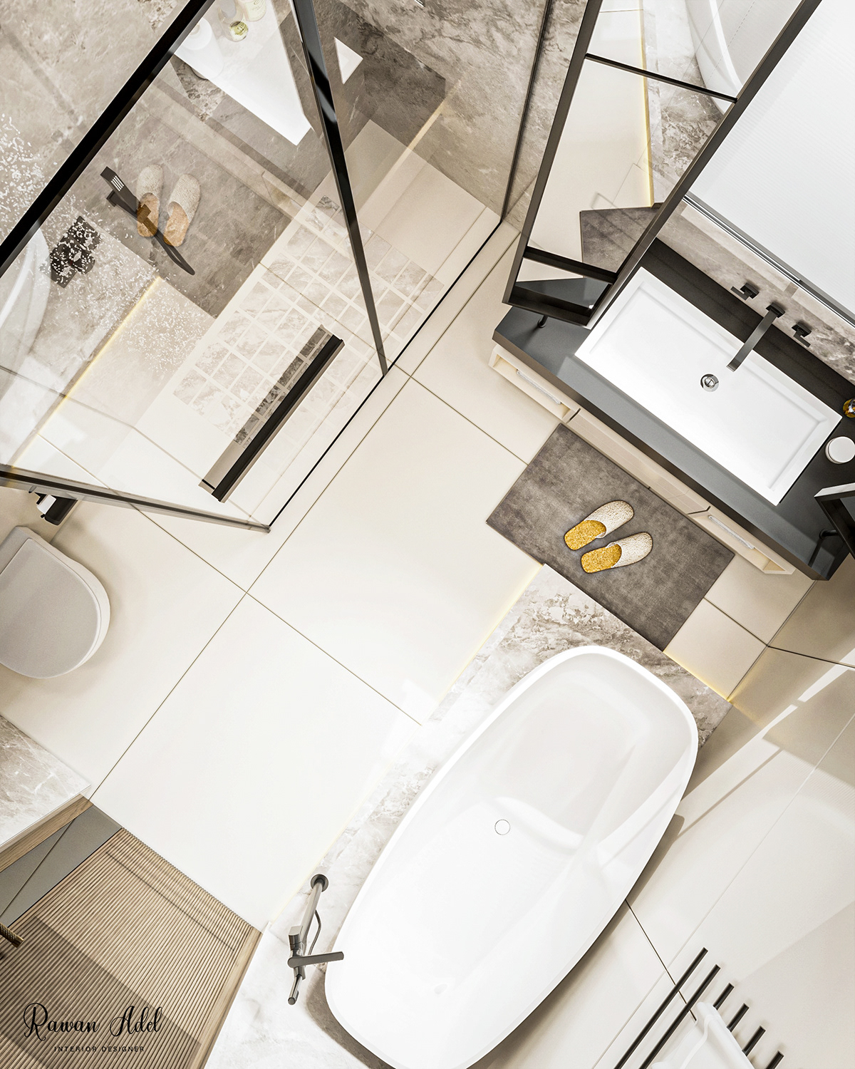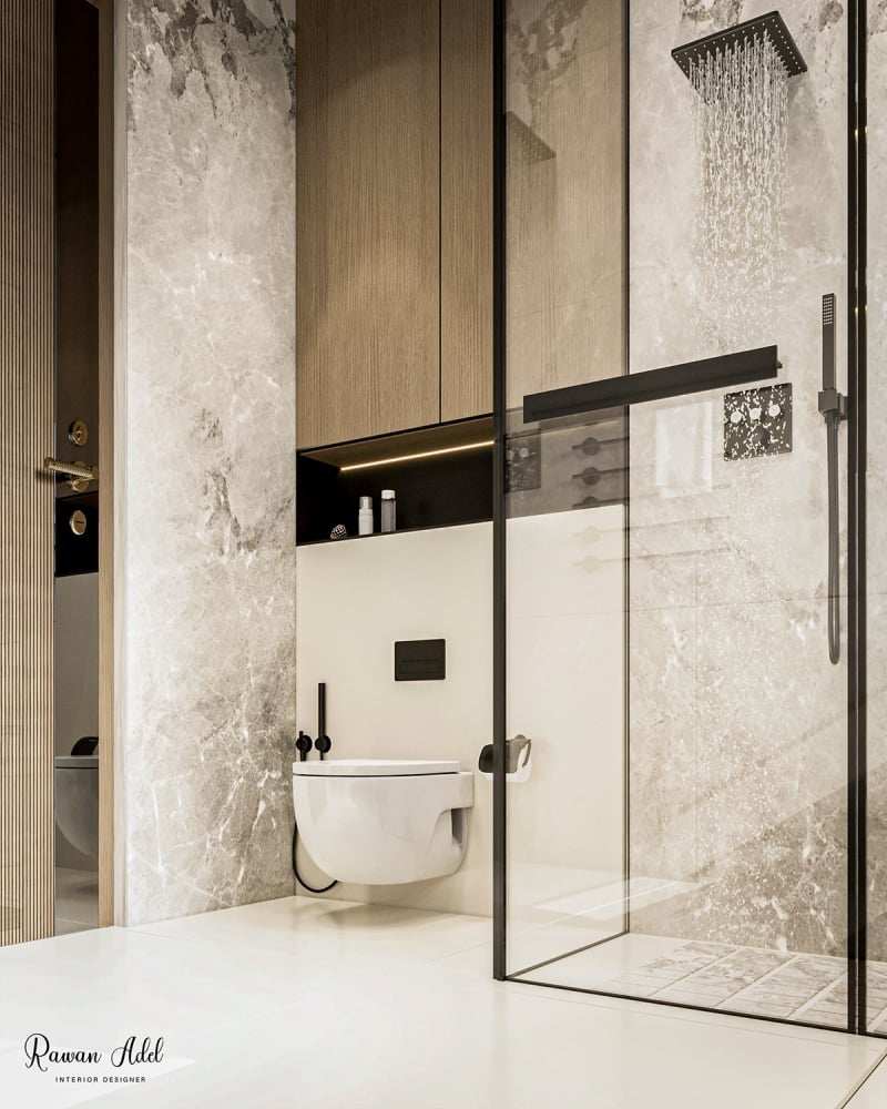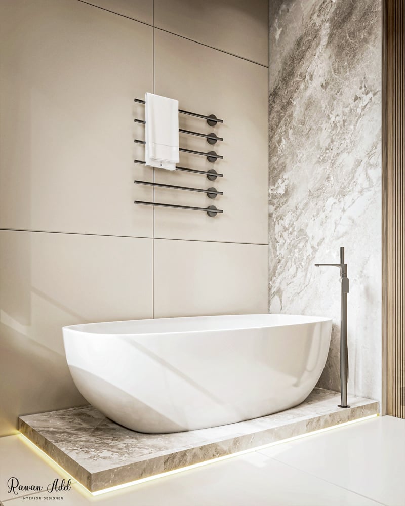 ЗD проєкт елегантної ванної кімнати єгипетського дизайнера Раван Адель.