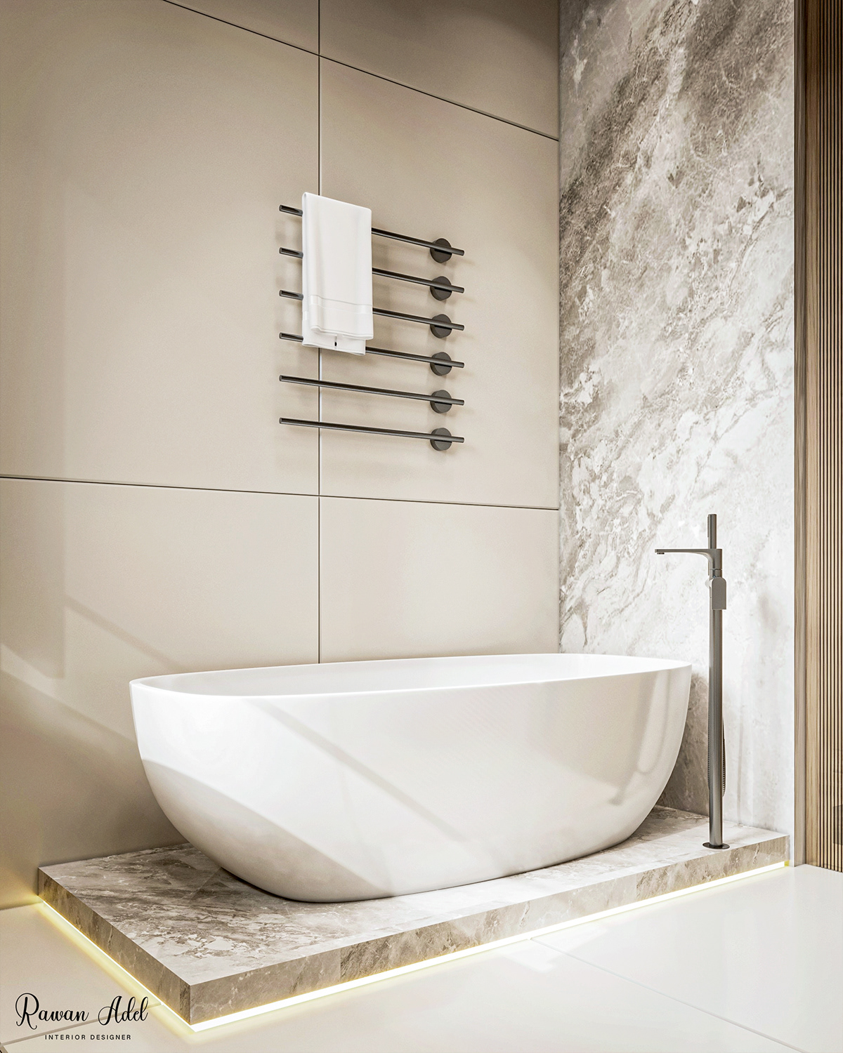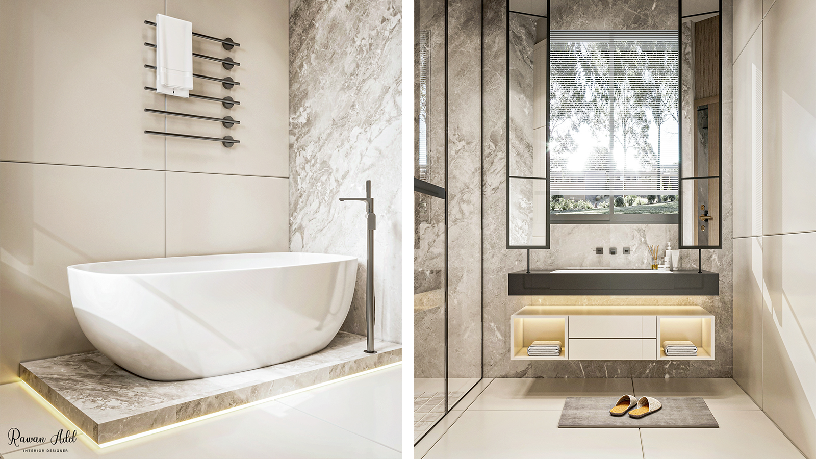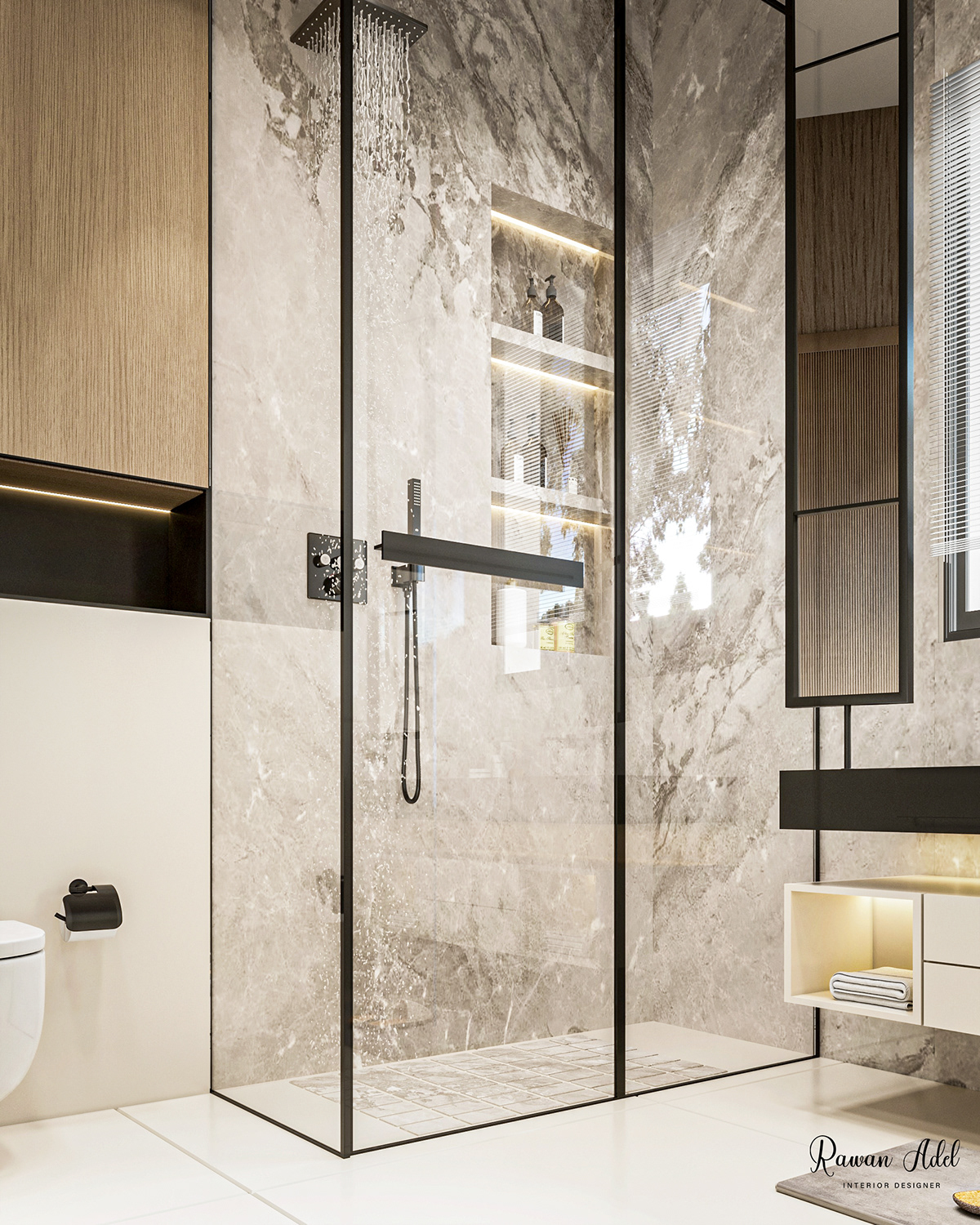 ЗD проєкт елегантної ванної кімнати єгипетського дизайнера Раван Адель.